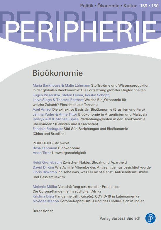 Alff, Henryk/Spies, Michael: Pfadabhängigkeiten in der Bioökonomie überwinden? Landwirtschaftliche Intensivierungsprozesse aus sozial-ökologischer Perspektive, PERIPHERIE – Politik • Ökonomie • Kultur, 3+4-2020, S. 334-359. Volltext: PDF